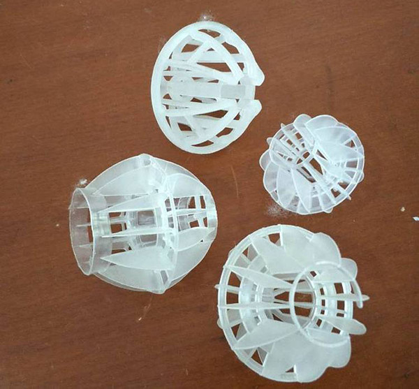 多面空心球填料采用聚丙烯塑料制成球狀,在球中部沿整個周長有一道加固環多面空心球填料環的上下各有十二片球瓣,沿中心軸呈放射形布置,適用于二氯化碳脫氣塔,接觸反應塔等裝置。
